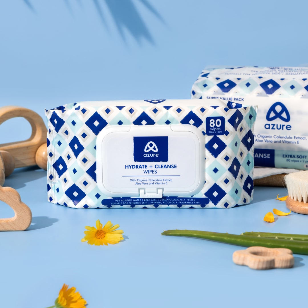 Caring for your little one with gentle and effective products is key, and that’s exactly what Azure Hydrate & Cleanse Wipes offer. These wipes are your go-to solution for tackling germs while being kind to your baby’s sensitive skin. Designed to eliminate germs, they are perfect for cleaning hands, toys, and surfaces—all without alcohol. Softer, thicker, and larger than the average wipe, they provide a cloth-like experience, making clean-ups easier and more efficient. Do more with less—just one wipe can handle big messes, giving you a powerful clean with fewer wipes.